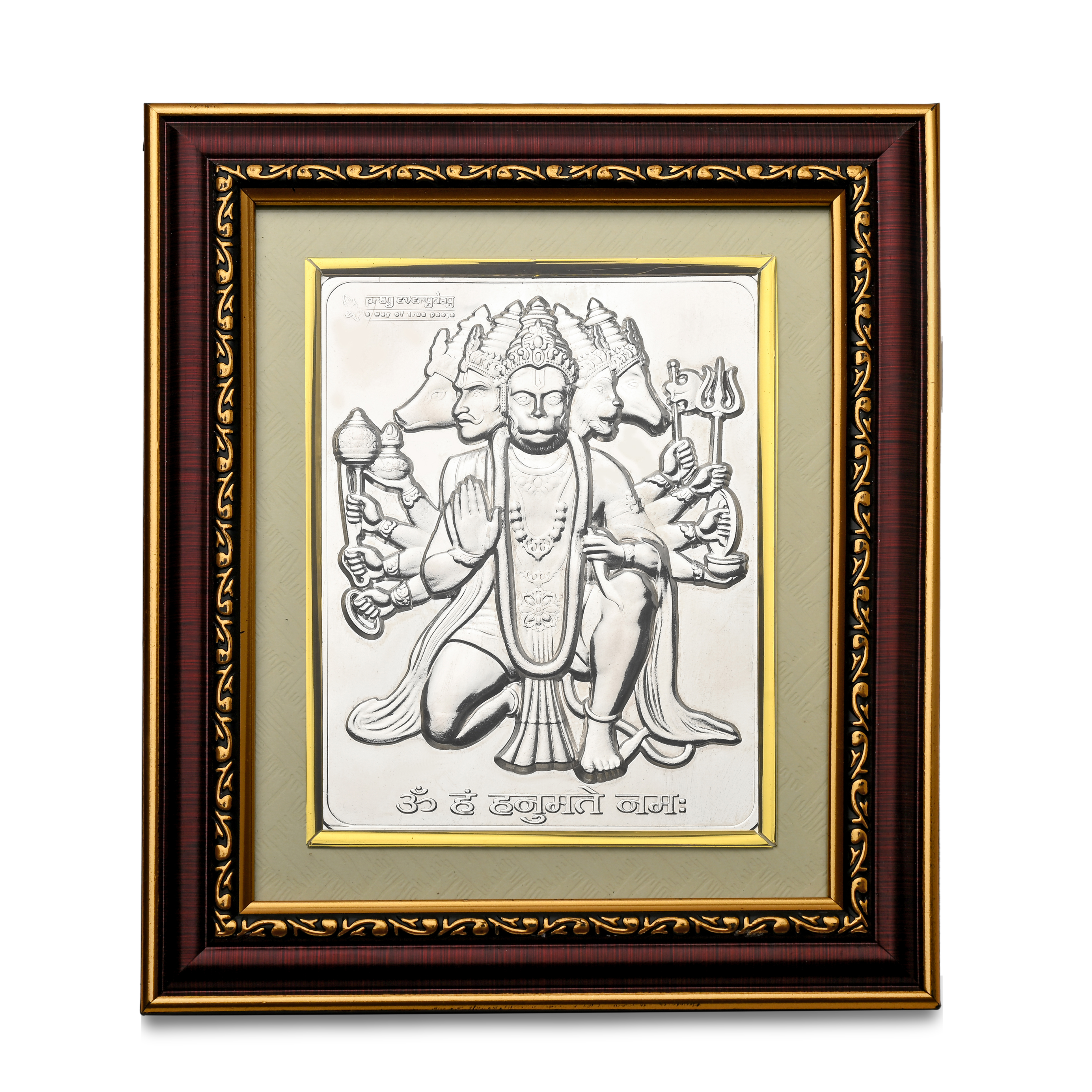 “PANCHMUKHI HANUMAN” Silver Plated Embossed Photo with Wooden Frame