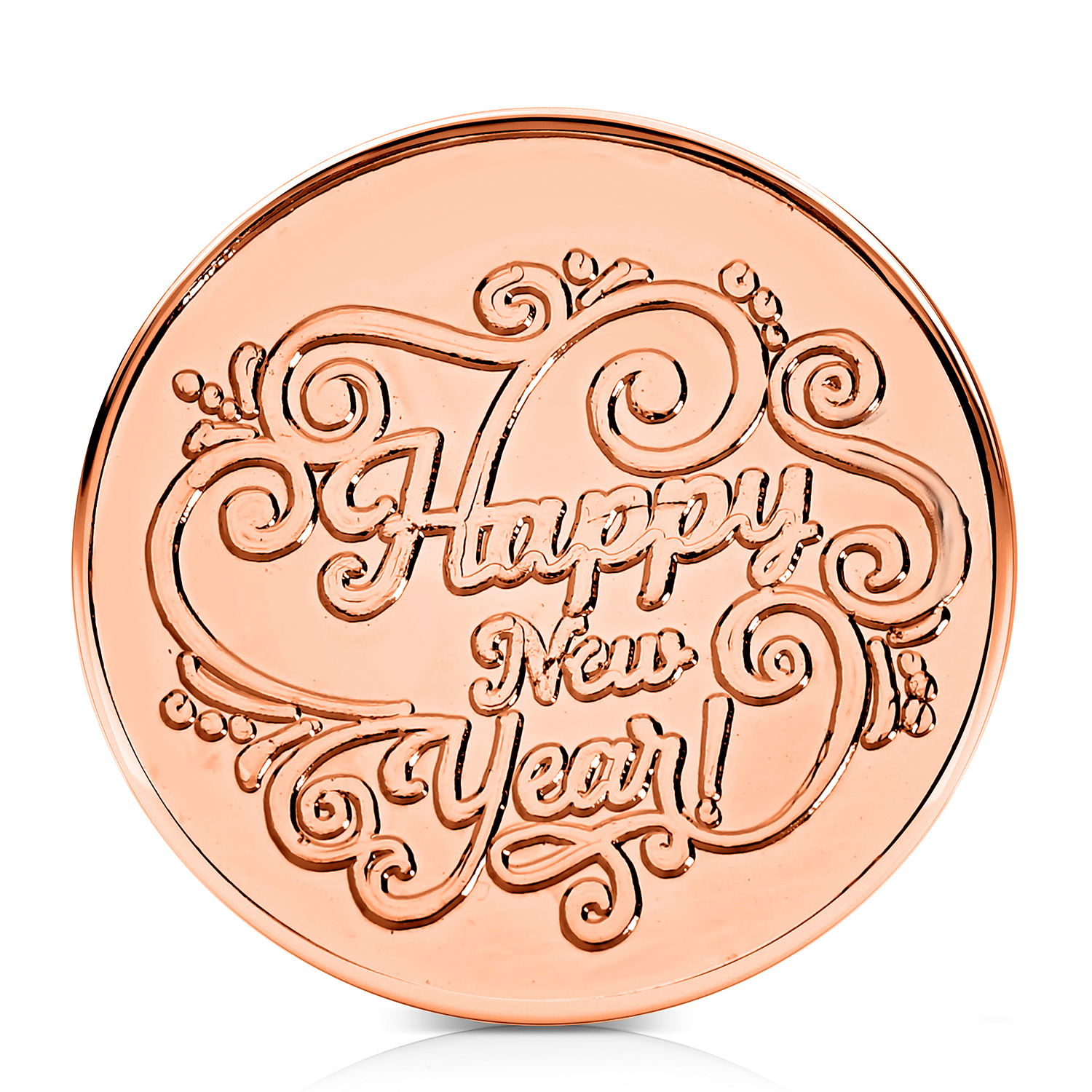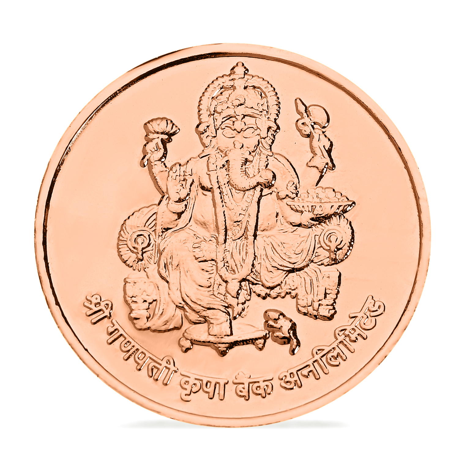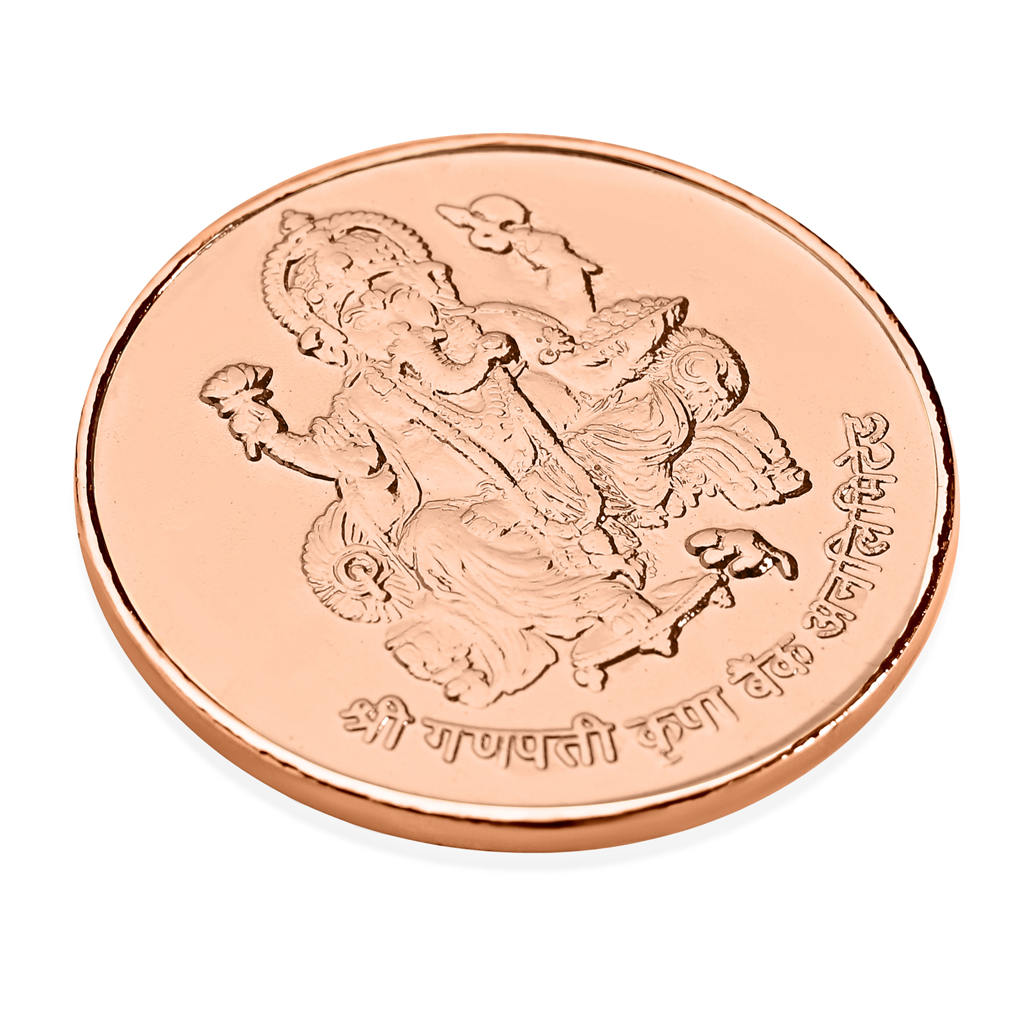 Premium copper Ganesh Ji coin with intricate embossed detailing for divine blessings. Backside engraved with a special New Year message for prosperity and new beginnings. Ideal for pooja room, temple, wallet, purse, office desk, car dashboard, or cash box. Perfect spiritual New Year gift for family, friends, colleagues, and devotees. High-quality copper finish with long-lasting shine and durability. Believed to attract wisdom, success, protection, positivity, and good fortune.