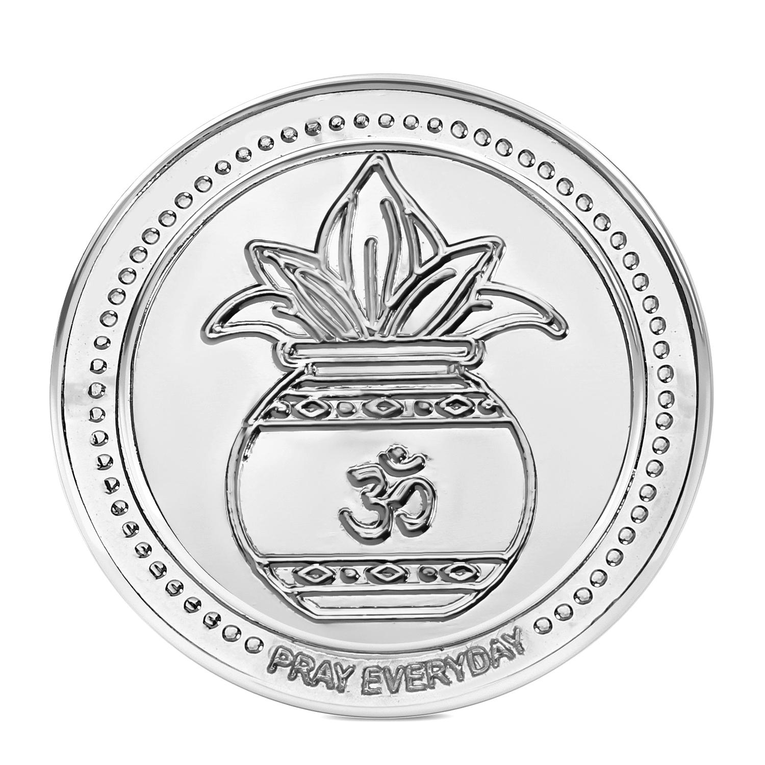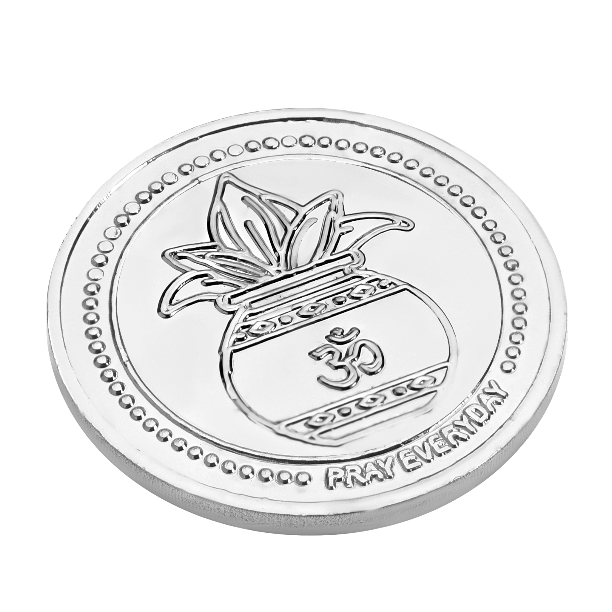 Crafted in elegant silver plating with detailed embossing, this coin is ideal for daily worship and gifting during special occasions.