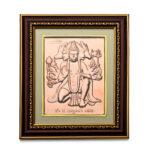 Add a divine touch to your home decor with this exquisite copper embossed photo featuring Laxmi Vishnu resting on Sheshnag. This masterfully crafted artwork showcases intricate details in copper embossing, capturing the sacred scene with remarkable artistry. The photograph is beautifully complemented by an elegant wooden frame featuring ornate golden patterns and a rich mahogany finish. The sophisticated multi-layered frame design includes decorative borders and a subtle sage-coloured mat that enhances the overall presentation. This timeless piece serves as both a stunning wall decoration and a symbol of spiritual devotion, perfect for your prayer room, living room, or any space where you wish to create an atmosphere of divine grace. The frame’s classical design elements make it a versatile addition that complements both traditional and contemporary interior styles. Each detail of this artwork has been carefully executed to ensure lasting beauty and visual appeal.