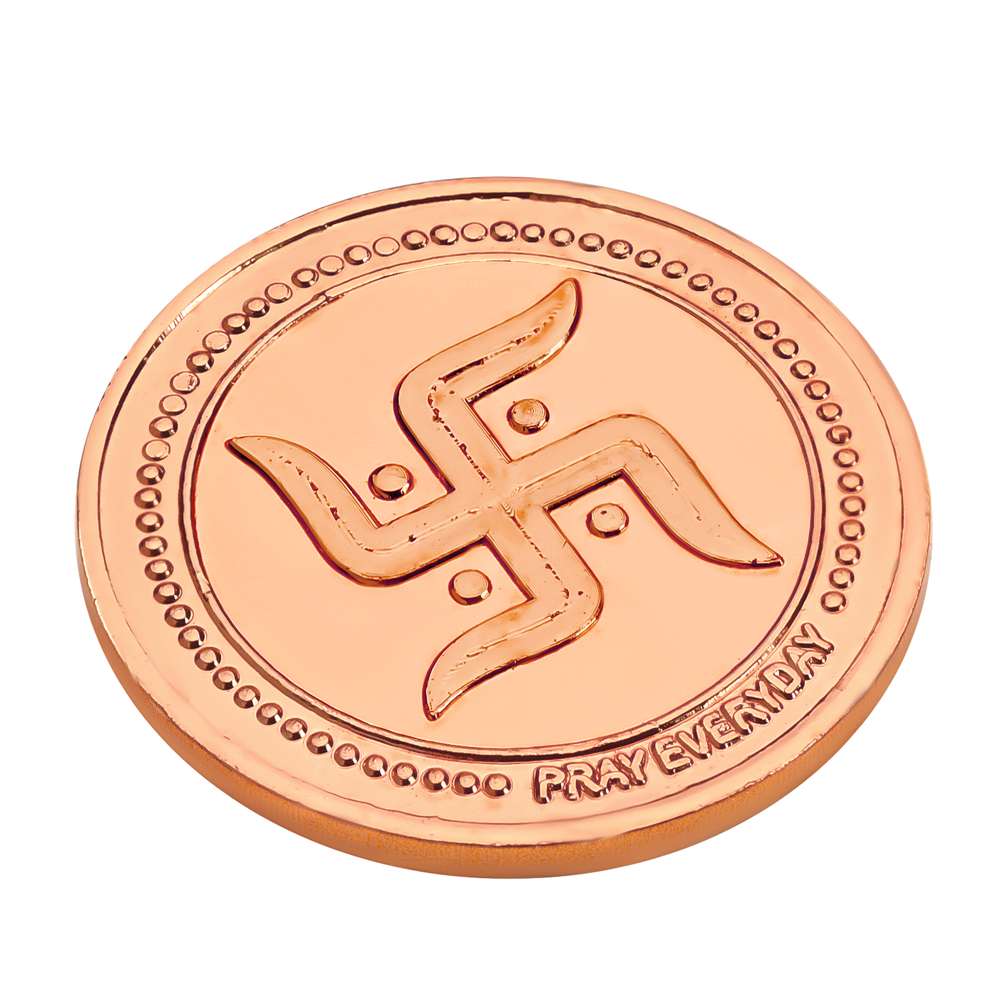 This Sacred Swastik Copper Coin by Pray Everyday is beautifully crafted with a classic embossed design, making it perfect for daily worship and auspicious occasions.