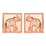 Transform your sacred or living space with this exquisite pair of copper yantras featuring majestic elephant motifs. Each yantra in this set of two showcases intricately detailed elephants facing opposite directions, masterfully crafted in premium copper with a stunning rose gold finish. The elegant design features beautifully framed borders that perfectly complement the raised elephant figures, symbolizing wisdom, strength and prosperity in Indian tradition. Measuring 3 inch in height and 3 inch in width, these versatile pieces are ideal for wall mounting or tabletop display. The copper construction ensures lasting durability while developing a beautiful patina over time. Perfect for home temples, meditation areas, offices or as decorative wall art, these yantras can be displayed together or separately to create balanced energy flow in your space. The traditional Vastu-inspired design combined with contemporary aesthetics makes these yantras an auspicious addition to any interior setting or a meaningful gift for special occasions.