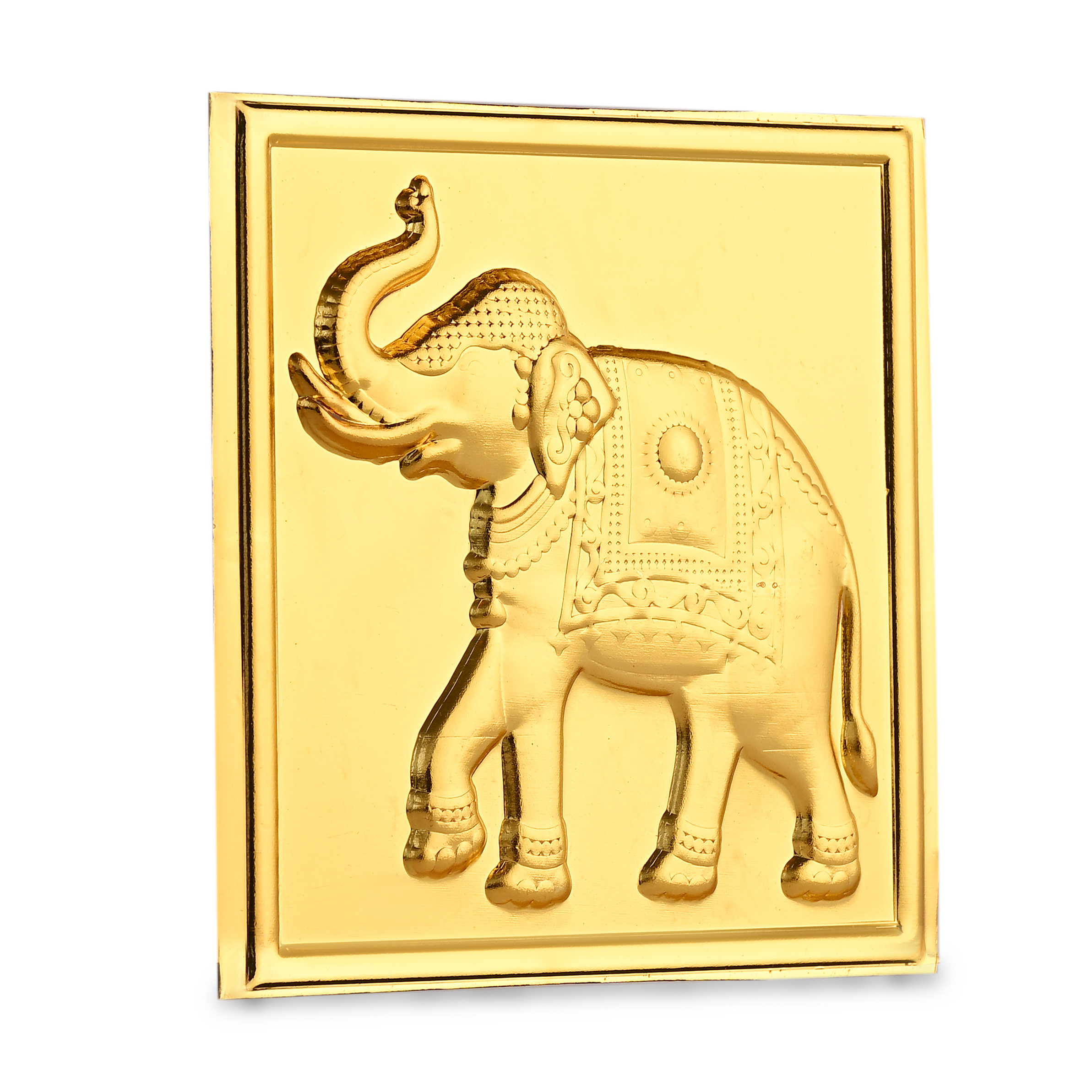 - AUTHENTIC DESIGN: Traditional Vastu-inspired Golden Plated yantra featuring sacred elephant motifs facing left and right directions, crafted with intricate detailing